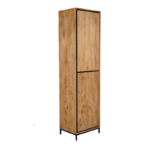 Boekenkast RichWood is uitgevoerd in gelakt mangohout in combinatie met een zwart gelakt metalen frame. Dit model is voorzien van twee deuren. De boekenkast is ingelegd met verschillende stroken hout, waar het meubel zijn eigentijdse karakter aan te danken heeft.