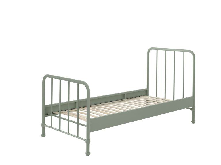 Het BRONXX bed is een metalen bed van 90×200 cm. De afwerking in het mat olijfgroen geeft het industrieel design een extra boost. De lattenbodem is inbegrepen.