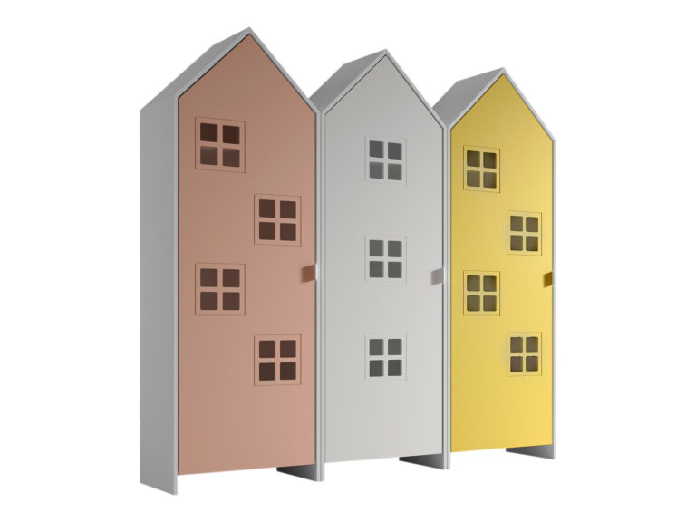 Deze combinatie bestaat uit 3 kasten: 1 CASAMI BRUGES kast met witte deur, 1 kast met deur in comfy pink en 1 kast met deur in more yellow. De kastjes uit de CASAMI collectie in de vorm van een strandhuisje geven meteen een speelse en kleurrijke toets aan elke kinderkamer en bieden ook de nodige opbergruimte voor kledij, speelgoed en talrijke andere spulletjes.