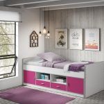 Eigenschappen van deze bonny-combinatie bestaat uit het fuchsia kajuitbed met de bijhorende lattenbodem.