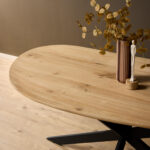 De eettafel Cloud heeft een stijlvol, organisch eiken tafelblad en een robuuste zwarte matrixpoot. Dit zorgt niet alleen voor een krachtig statement in je eetkamer, maar voegt ook een moderne en verfijnde touch toe aan je interieur.