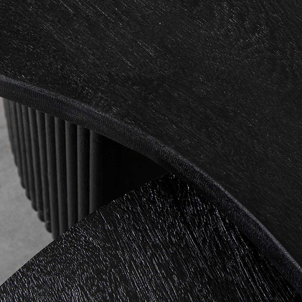 Salontafel set Timon van LABEL51 is een handige set uitgevoerd in gezandstraald zwart mangohout. Salontafel set Timon bestaat uit twee tafels, een grotere van 100x58x40 cm en een kleinere van 60x47x35 cm. Timon is zo een ontzettend handige set die je door schuifruimte de mogelijkheid geeft de tafels geheel naar eigen wens neer te zetten. Een echte speelse musthave!