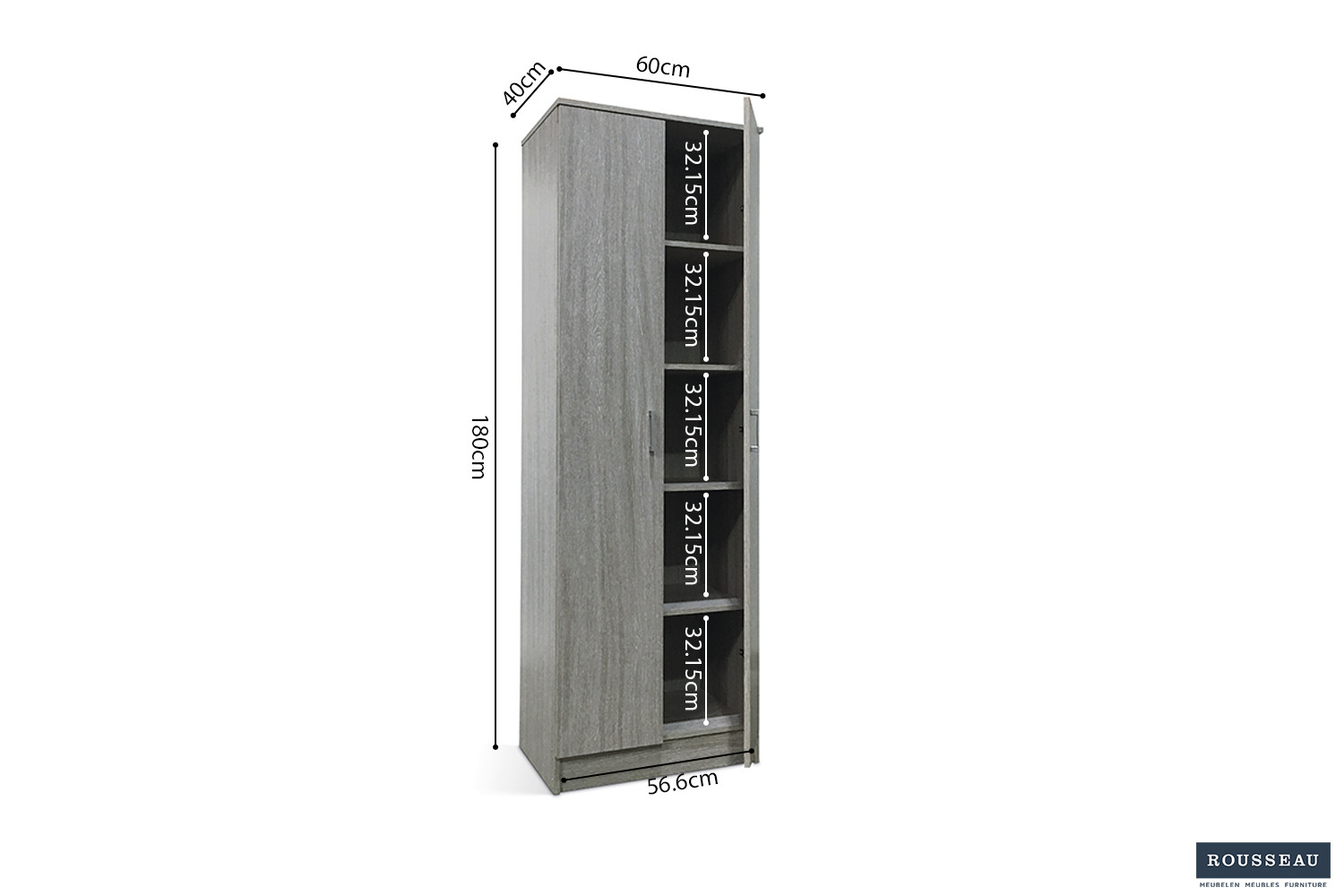 Eigenschappen van opbergkast 'ray' 2 deuren en 4 legplanken grijze eik (1c)