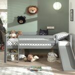 Deze PINO mid-sleeper met glijbaan is grijs gelakt en gemaakt uit massief Scandinavisch grenen hout. De lattenbodem is inclusief en is geschikt voor een matras van 90 x 200 cm. De ruimte tussen het bed en de grond is 41.5 cm.