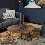 Salontafel Kate 80 cm is gemaakt van aluminium en ijzer. Het ronde tafelblad is gemaakt van aluminium en het onderstel van ijzer. Het blad is afgewerkt met een antiek gouden finish. Het ijzeren onderstel is afgewerkt met een zwarte finish.