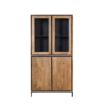 Vitrinekast RichWood is een combinatie van gelakt mangohout met een zwart gelakt metalen frame, wat kenmerkend is voor deze woonserie. De kast heeft vier deuren waarvan de bovenste deuren zijn uitgevoerd in glas. De vitrinekast dankt zijn eigentijdse uitstraling aan de fraaie inleg van diverse houten stroken. Deze vitrinekast is onderdeel van de exclusieve RichWood woonserie van Starfurn.